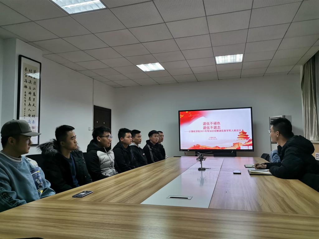 为扎实做好退役复学员工各项工作,全面了解和掌握退役复学员工的思想、生活、学习状况,推进太阳成集团tyc539“我为师生办实事”实践活动走深走实。2021年12月2日,在教学北楼216召开了2021年秋季军训总结暨退伍复学员工座谈会,辅导员张雯静、侯勇以及8名太阳成集团tyc539退役复学员工参加座谈会。会议由张雯静主持。