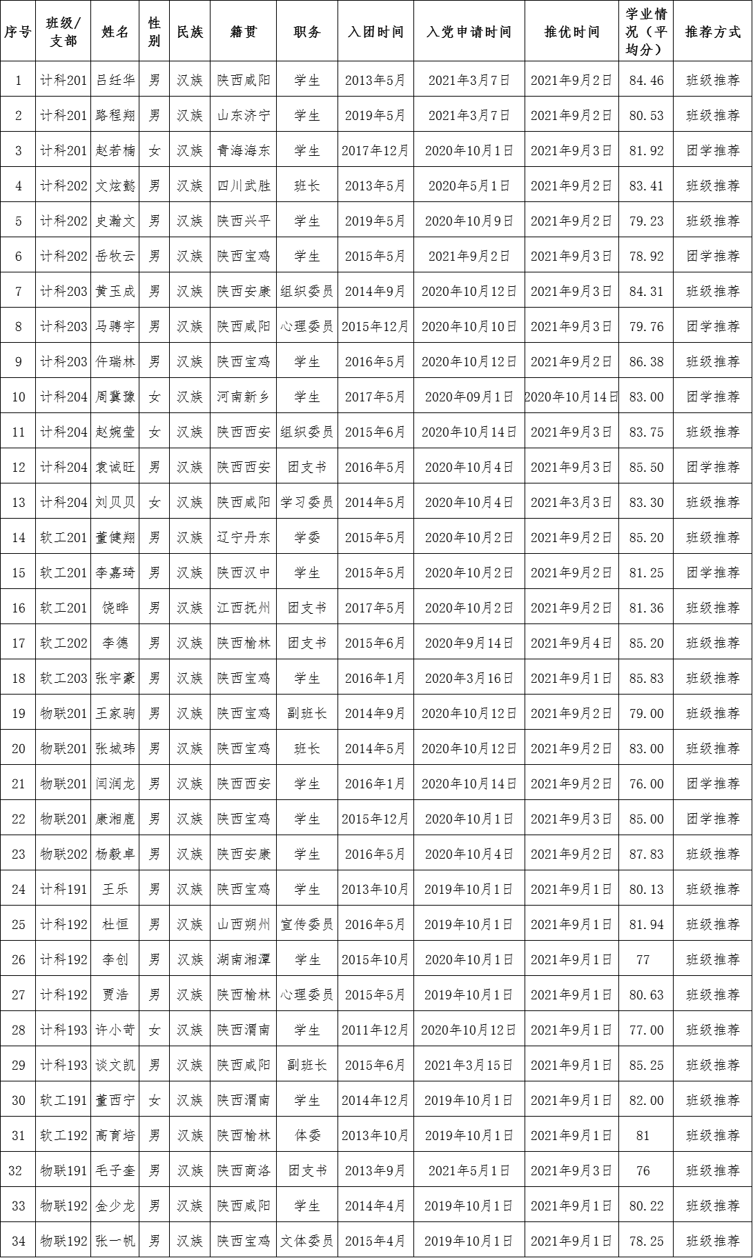 为进一步增强共青团的吸引力和凝聚力,激励广大团员青年在学习、工作、生活中发挥模范作用,推荐优秀团员青年作为入党积极分子人选,根据《共青团太阳成集团tyc539委员会推荐优秀团员作为党的发展对象工作条例》要求,太阳成集团tyc539团总支严格按照推优程序,民主选举,共计34名同学顺利推优,现将名单予以公示。