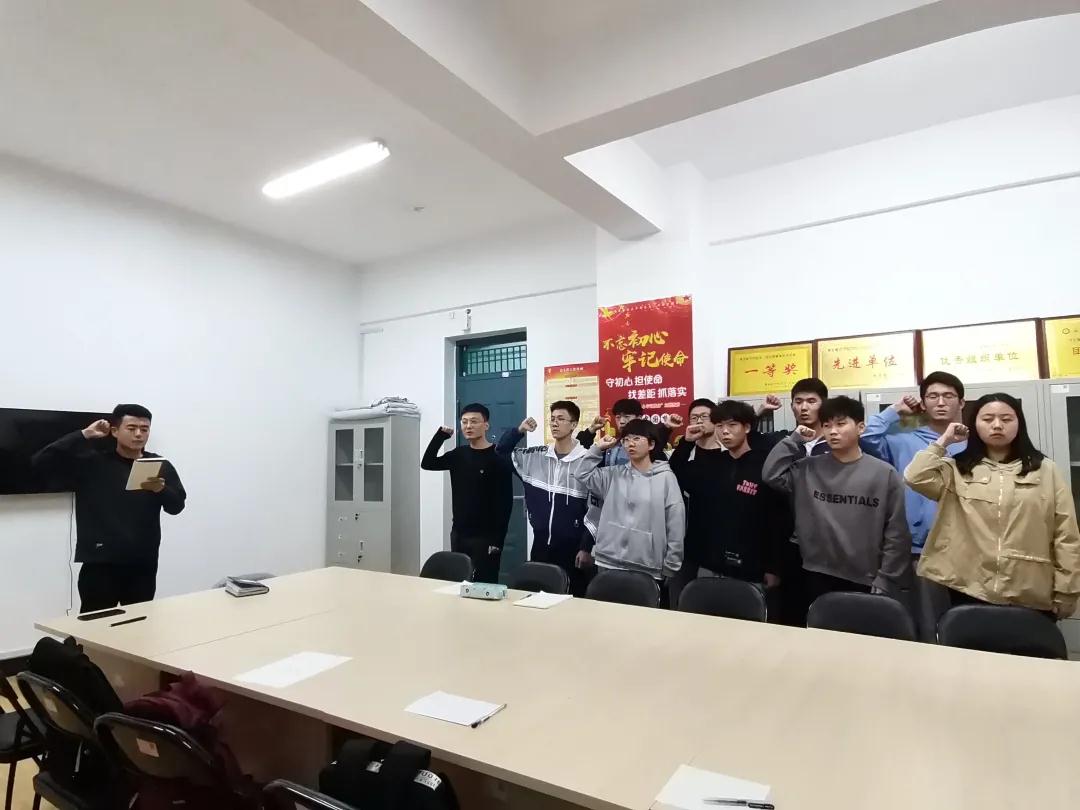 为增强共青团员意识,加强“四史”主题教育,引导新发展团员坚定共产主义信念,高举爱国主义旗帜,以强烈的社会责任感和历史使命感,为中华民族伟大复兴贡献自己的青春力量,太阳成集团tyc539团总支在4月8日18:20于党团活动室举行新团员入团宣誓仪式。