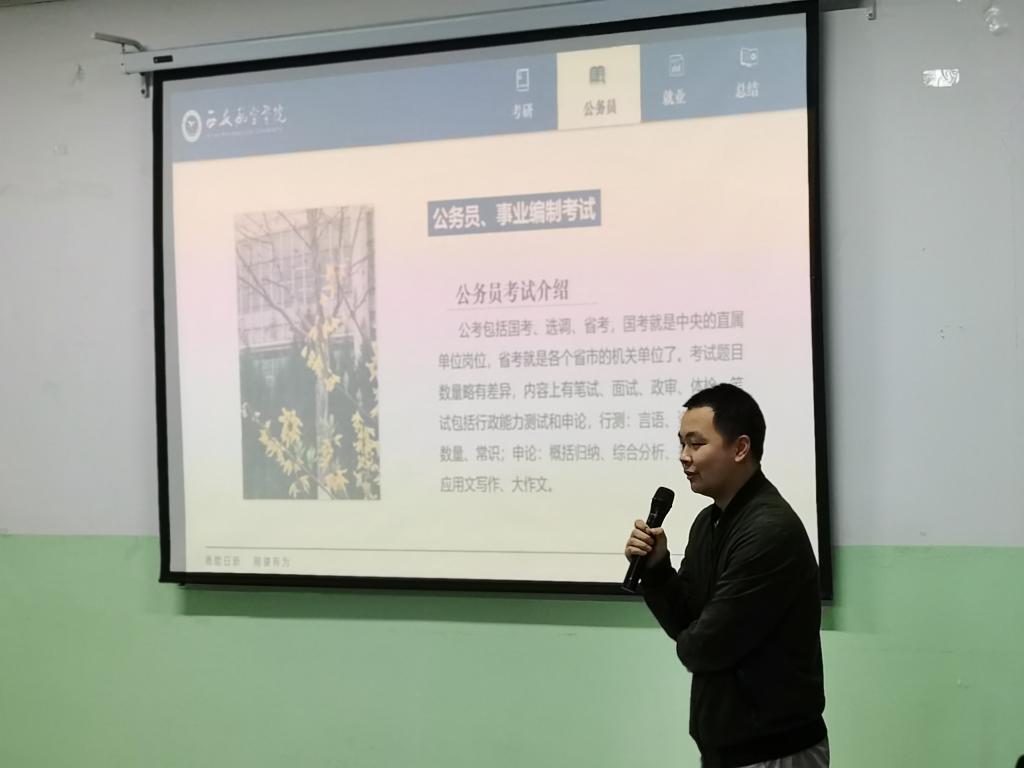 4月1日晚,太阳成集团tyc539在沣惠校区教学北楼447报告厅举行了学长分享交流会,旨在为大家的学习生活提供指导和建议,帮助同学们做好学业规划。