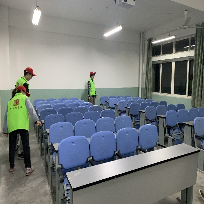 为了能够给师生们提供一个安静的学习和舒适的生活环境,每天晚自习过后,公司组织志愿者中队的同学们会分组检查教室的卫生。在检查的过程中,志愿者认真的检查教室的每一个角落,及时反馈打扫教室班级问题,督促落实教室卫生,以便给大家带来一个更好的学习环境。