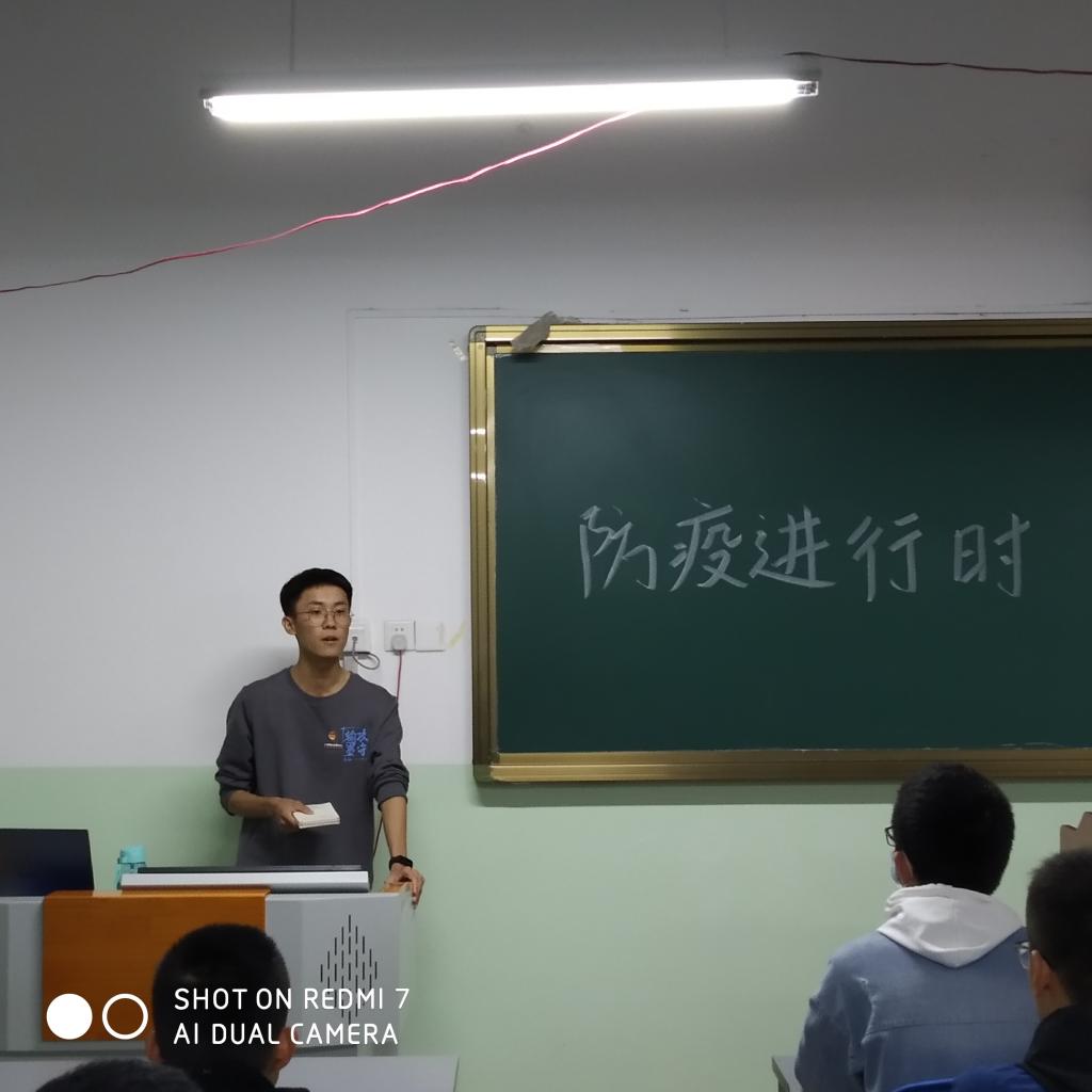 活动开始前,侯勇老师针对当时青岛疫情要求同学们通过本次活动,了解.线下防疫与节时防疫的区别,继续提高警惕,做好日常防护。活动开始后,赵雨晰同学结合官方新闻媒体《新闻1+1》,用事实提醒同学们加强防疫工作。赵雨晰同学通过“防疫知识知多少”、“我在防疫的日子”等章节,带领同学们更加深层次的了解防疫知识和保护自己的相关举措。并且通过活动分享,同学们通过分享自己的学习心得,增加了自己的防疫知识。活动后,侯老师对同学们提出了以下要求:1.注意个人卫生,熟练运用七步洗手法,外出注意个人防护;2.端正态度,对于疫情防护不可存在侥幸心理;3.每天按时打卡,及时上报个人身体情况,共同营造良好教学环境。并且希望同学们在特殊时期保护好自己积极配合公司卫生工作,营造舒适安全的校园环境。