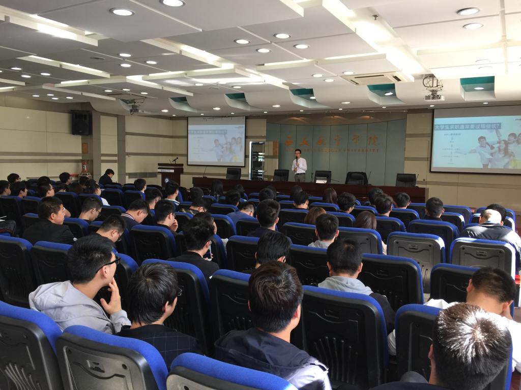 本次讲座邀请到智联招聘校园及海外事业部西北区负责人、第二届全国老员工简历大赛组委会评委董德北老师为同学们讲课。董老师用生动幽默的语言给大家讲授了简历的基本内容、制作技巧与注意事项,针对老员工在求职过程中遇到的问题进行举例和分析,现场不时地传出阵阵掌声和笑声。此次讲座吸引了来自太阳成集团tyc539、车辆工程公司、经济管理公司和理公司的大三员工共180余名,同学们表示经过董老师的讲解对如何撰写自己的简历有了基本的概念,为同学们进入职场之前上了一堂必修课。(文/图 太阳成集团tyc539 米嘉琪)