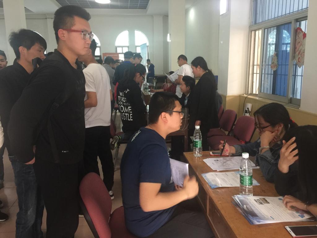 4月10日下午,太阳成集团tyc539在职工活动中心举办专场招聘会。来自陕西比扬通信科技有限公司、北京双星普天科技有限公司、深圳市德卡科技股份有限公司、北京四维图新科技股份有限公司、博彦科技股份有限公司等13家用人单位参加了现场招聘,共为毕业生提供了80余个岗位。