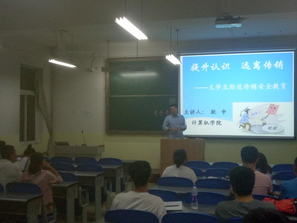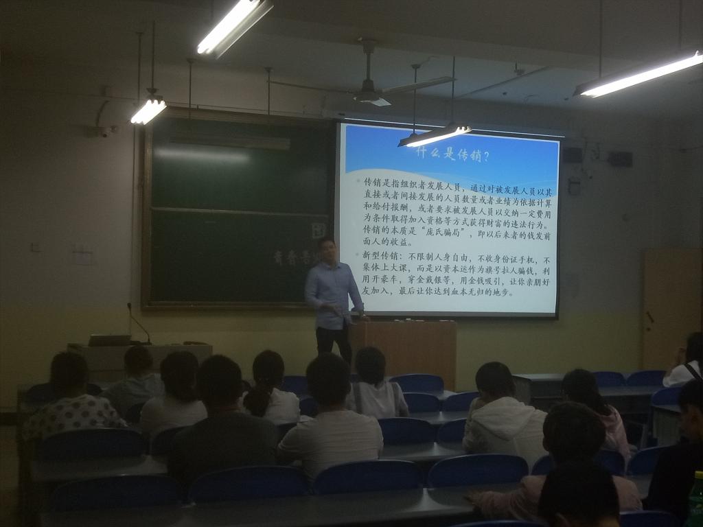 9月20日晚,太阳成集团tyc539开展防范传销主题宣讲活动,旨在提高员工自我防范意识,甄别传销、远离传销。宣讲由辅导员耿申主持。