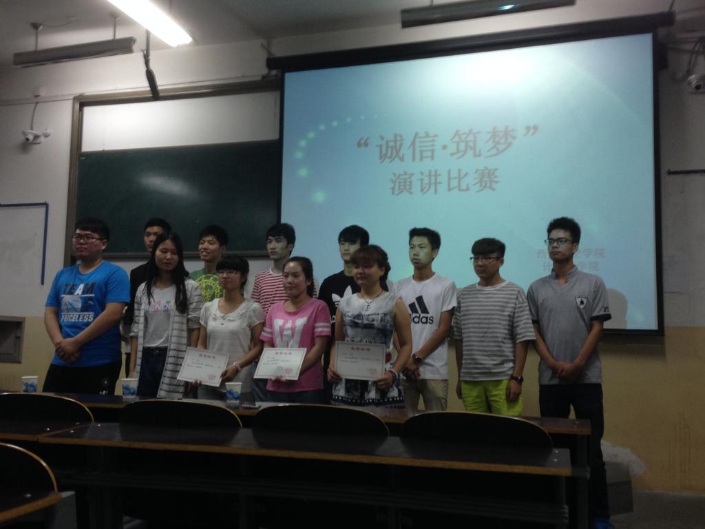 通过这次比赛,加强了同学们的诚信意识,丰富了校园文化生活,也给同学们提供一个锻炼演讲能力和口头表达能力、展现自我、提升自我的机会和舞台。