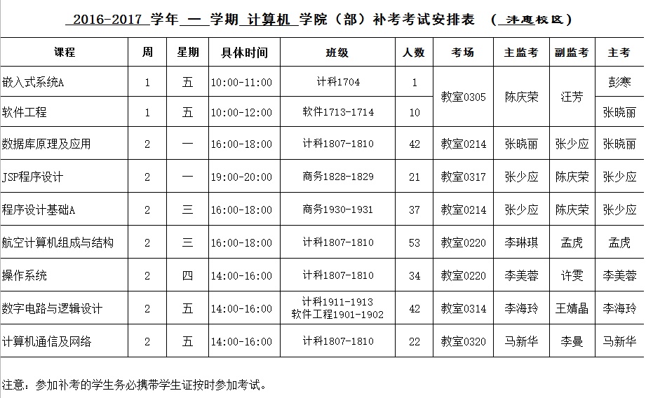 2016-2017-2学期太阳成集团tyc539补考安排表