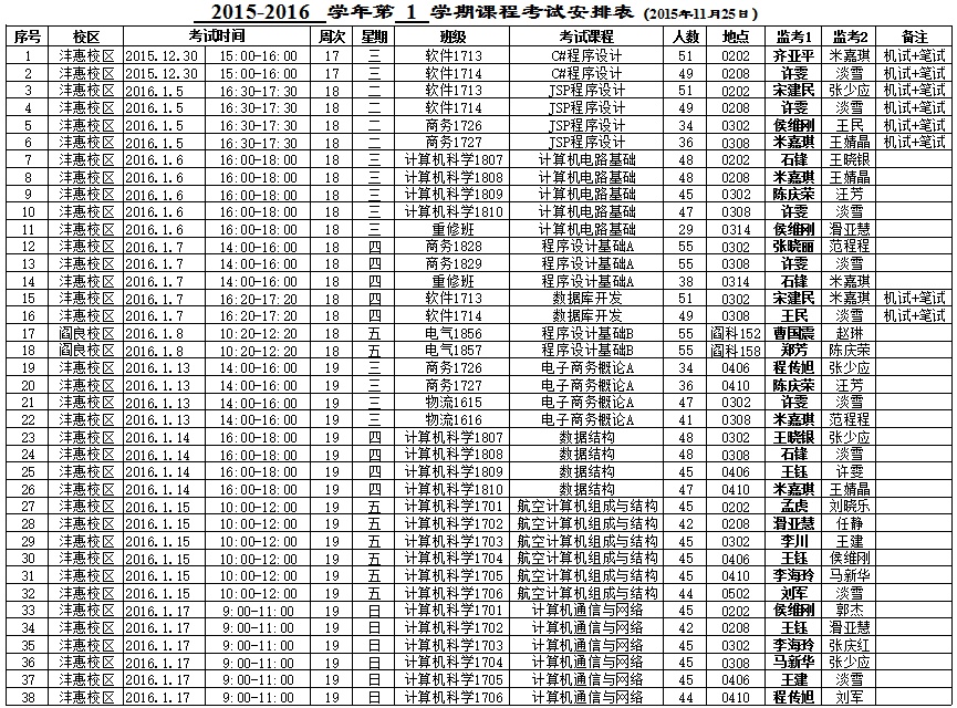 2015-2016-1学期期末考试安排表(14周之后)
