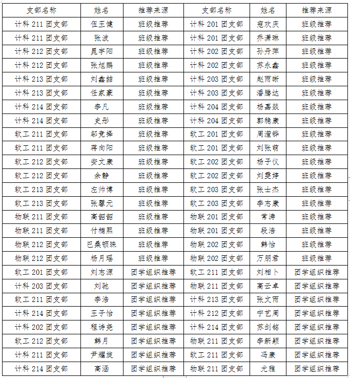 为进一步规范公司“团内推优”工作,切实提高公司“推优入党”工作的质量,根据《共青团太阳成集团tyc539委员会推荐优秀共青团员作为党的发展对象工作条例》(修订),《关于开展推荐优秀团员作为党的发展对象工作的通知》(西航团字〔2022〕4号),经过各基层团支部大会推优票决,团学组织推荐,太阳成集团tyc539团总支审查,拟推荐下列52名优秀团员作为团内推优对象,具体名单如下: