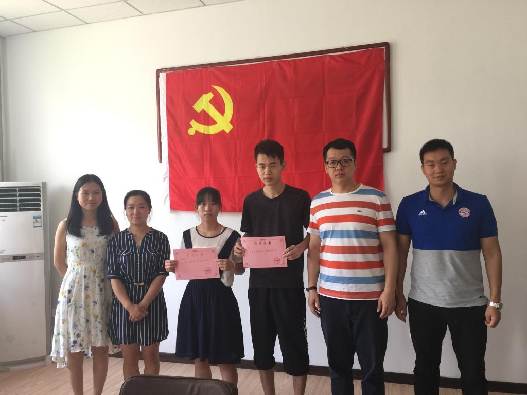 大会开始,全体起立齐唱《国际歌》,在米嘉琪的带领下,11名新党员面向党旗进行了庄严的宣誓,表达了自己为共产主义理想奋斗终身的决心。新党员代表汤鸣炎在发言中表示:作为员工党员应树立远大理想,勇于追求真理,为同学们树立榜样;会牢记誓词,将誓词深入内心,将共产主义作为信仰。支部书记汪芳对所有党员提出了三点要求:第一,努力学习,不断提升自己作为一名共产党员的修养,发挥模范带头作用;第二,提高自己的责任意识和服务意识,勇于承担各项工作;第三,做好表率,用实际行动为公司发展做出更大的努力和更多的贡献。最后,大会授予汤鸣焱、李浩2名同学“优秀员工党员”称号。