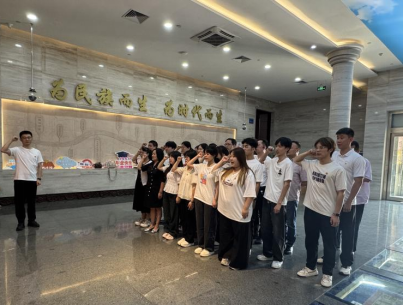 参观开始前,在鲜红党旗的见证下,全体党员神情庄重,高举右拳,重温入党誓词。
