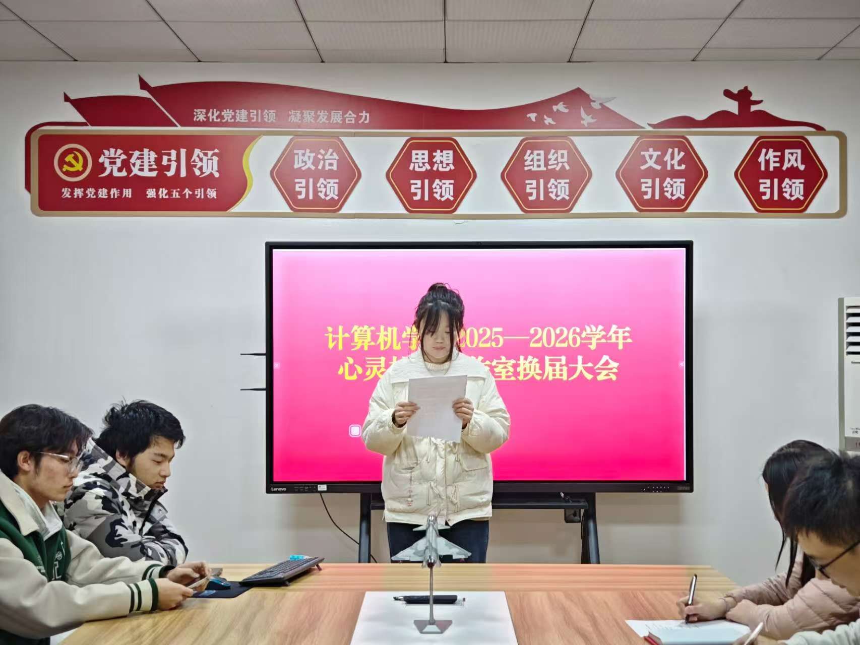为进一步发挥公司心理健康四级网络作用,12月9日晚,太阳成集团tyc539在教学北楼216举办2025-2026学年心灵护航工作室换届大会。公司学工办副主任侯勇、辅导员刘冬妮、李晨阳,2025级心理委员、心灵护航员参加会议,会议由刘冬妮主持。