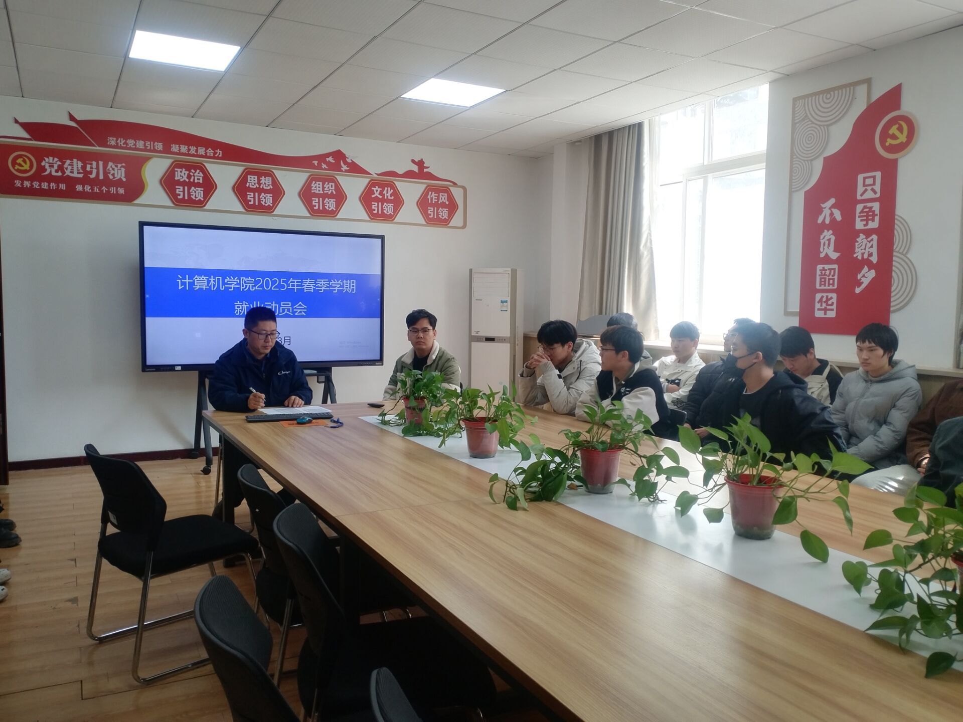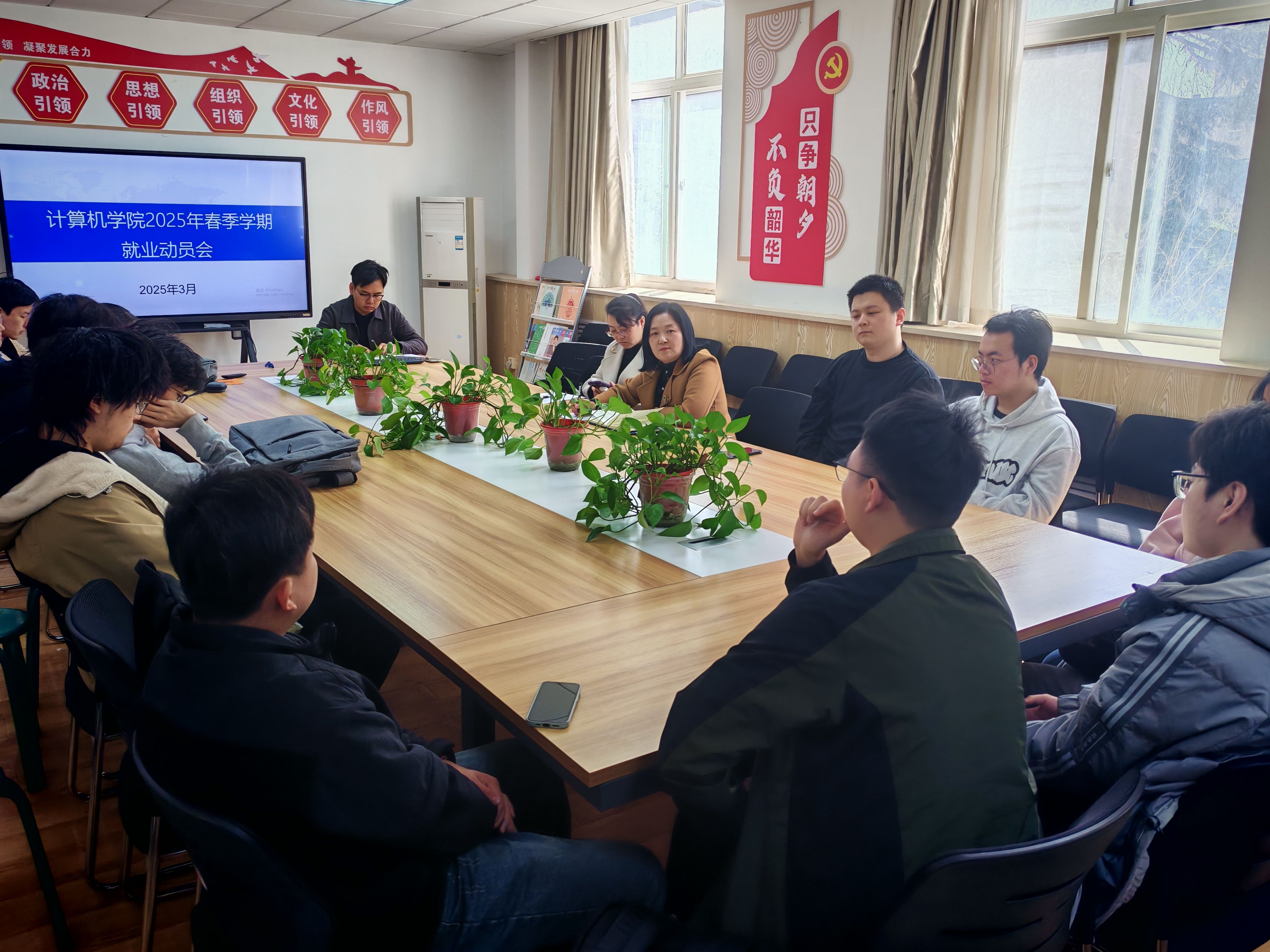 各专业负责人、教研室主任结合专业就业形势,帮助员工分析现今岗位需求,告知员工参加招聘工作时的注意事项,同时提醒员工兼顾求职与毕业设计的工作安排;各专业包抓领导、辅导员在会上了解员工近期计划安排,督促员工抓住春招的黄金时间,把握岗位机会。